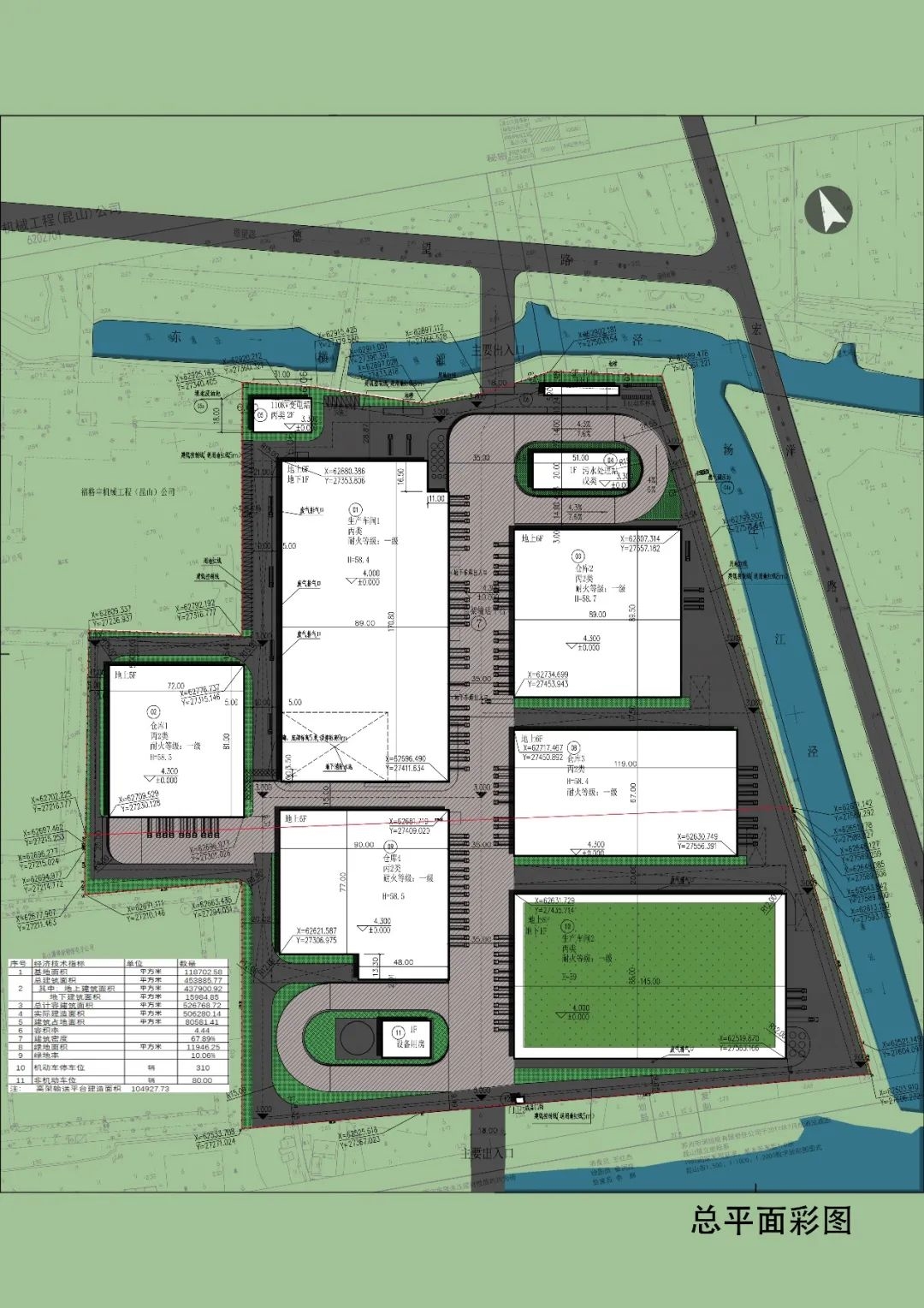 该项目占地面积118700㎡,建筑面积超过52万㎡,建筑高度达59米,是拥有国内最高容积率、最高建筑密度的工业建设项目之一。其6层高架输送平台高度就达46米。项目集生产加工、仓储、冷链物流于一体,建成后,会有数家国内中央厨房生产企业入住,成为辐射苏南大部、上海和浙江局部地区的冷链物流中心,预计产能可达冷链鲜食1800万盒/年,速冻中式面食6000吨/年,酱料包6000吨/年等,可实现年产值100亿元。