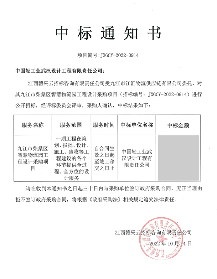 ·中标九江市柴桑区智慧物流园工程设计项目
