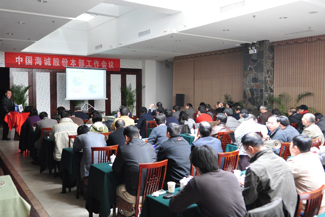 会议首先由总裁严晓俭传达集团工作会议精神,国资委派驻集团监事会主席寻寰中的重要讲话、俞海星总经理所作的工作报告和陈鄂生董事长所作的总结发言,介绍了集团给海诚股份2012年生产指标的下达情况。接着,严总和各位分管副总裁分别与生产部门和专业部门签订了2012年度经营目标责任书、管理目标责任书。为更好地帮助和支撑生产部门完成任务指标,今年公司还首次与职能部门签订了管理目标责任书,进一步体现了一线和职能部门共担责任的管理理念。