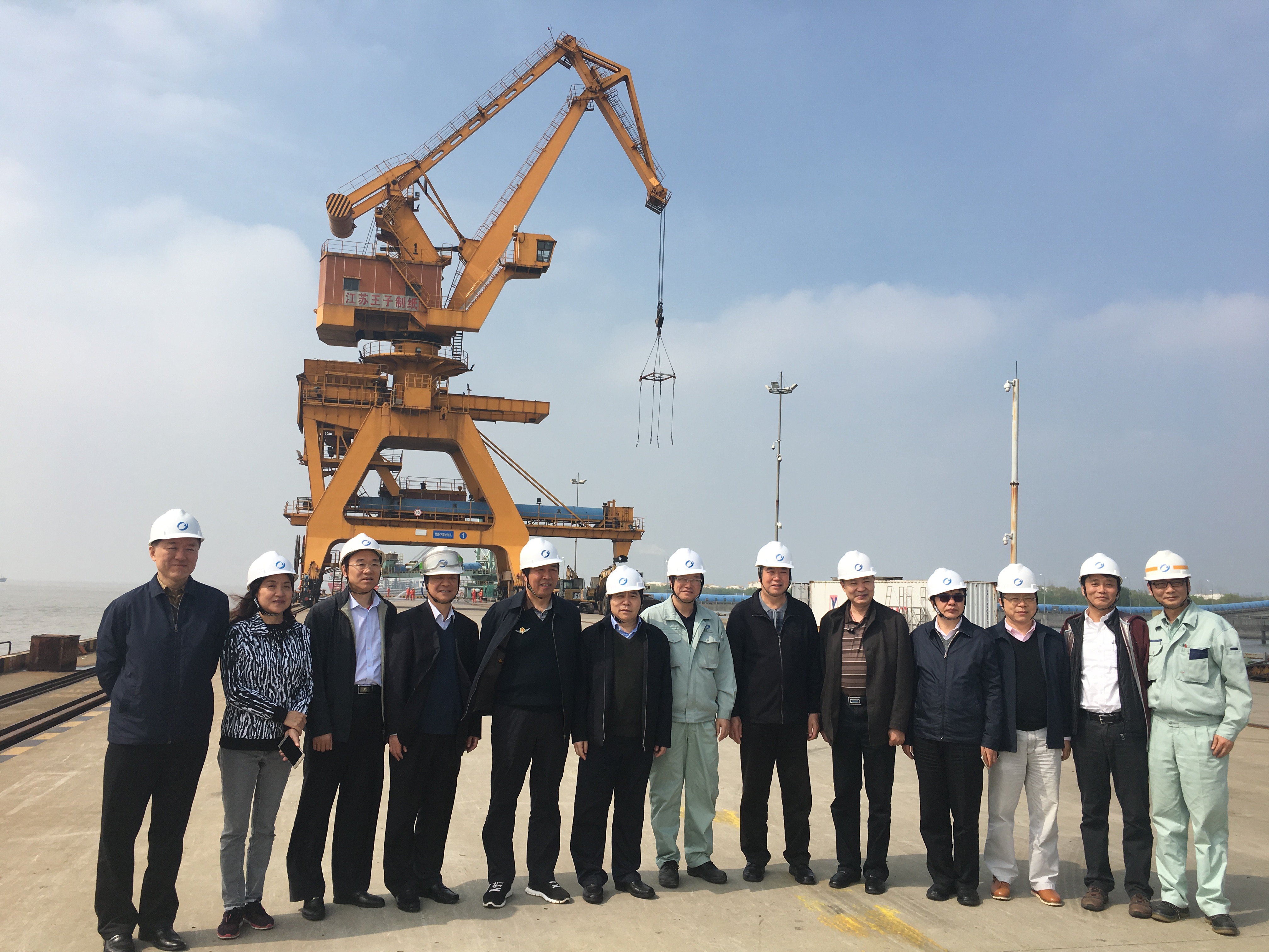 稍事休息,领导们又马不停蹄,前往本次考察第二站:江苏王子制纸有限公司项目。该项目是日本迄今为止在华投资的最大的项目,也是王子制纸集团最大的海外投资项目。作为项目总承包方,海诚股份承担了该项目木片备料到成品木浆板整条生产线的工程设计及土建施工、部分设备材料供货、机电设备安装、生产线调试等技术服务。该项目工程单体多,设备、材料采购工作量巨大,土建施工工程量和安装工程量大,难度高。项目团队通过管理创新等有效手段确保了项目的顺利完工。董事会领导一行在王子工厂总经理和项目经理庞建国引导下,参观了厂区和码头,对现代化的生产管理给予了高度评价。