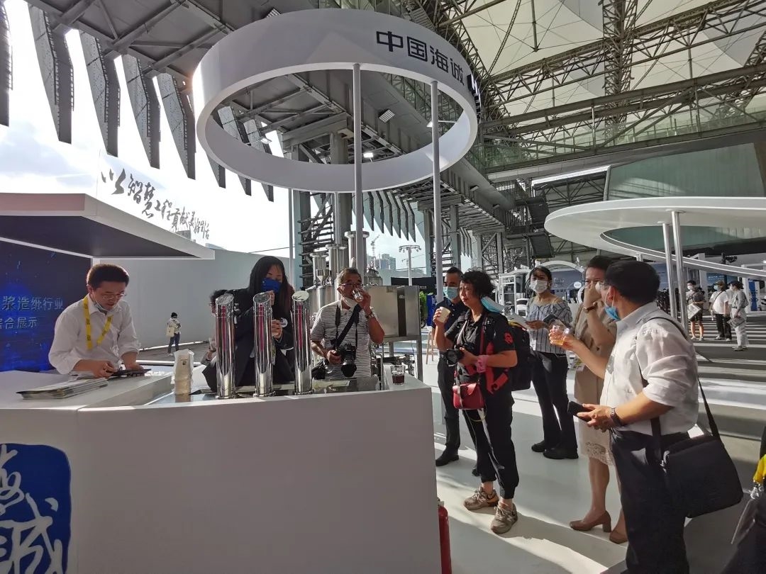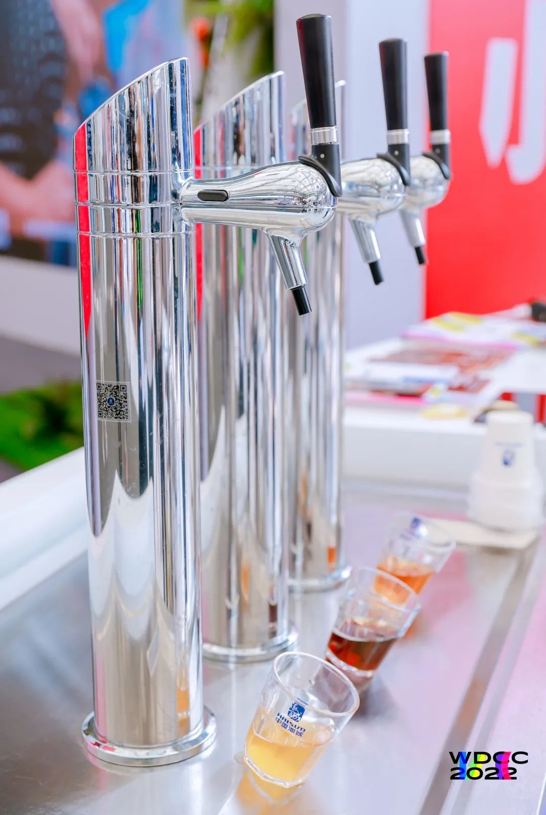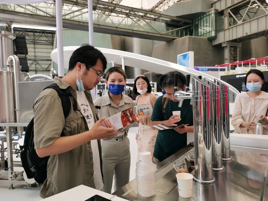 观众一边品尝白啤、黄啤、黑啤等多种精酿啤酒,一边学习关于精酿啤酒设备、酿造工艺等知识,“海诚精酿”成为了展会活动中人气最旺的展区之一。