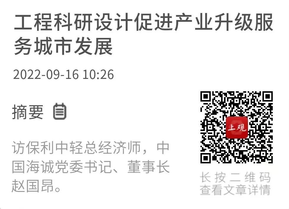 《工程科研设计促进产业升级服务城市发展——访保利中轻总经济师,best365英国体育在线党委书记、董事长赵国昂》