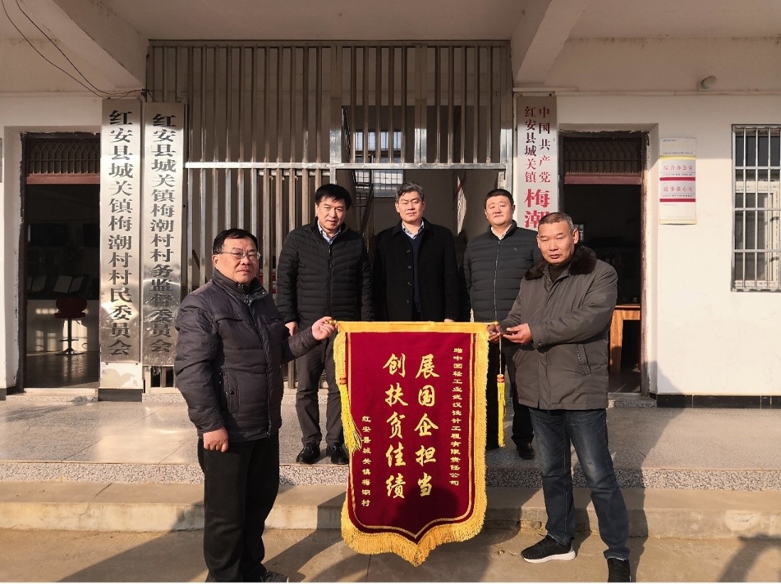 图为2020年12月,公司党委书记、董事长赵国昂,副总裁周原专程赴所属武汉公司对口精准扶贫点——湖北省黄冈市红安县城关镇梅潮村看望扶贫干部。