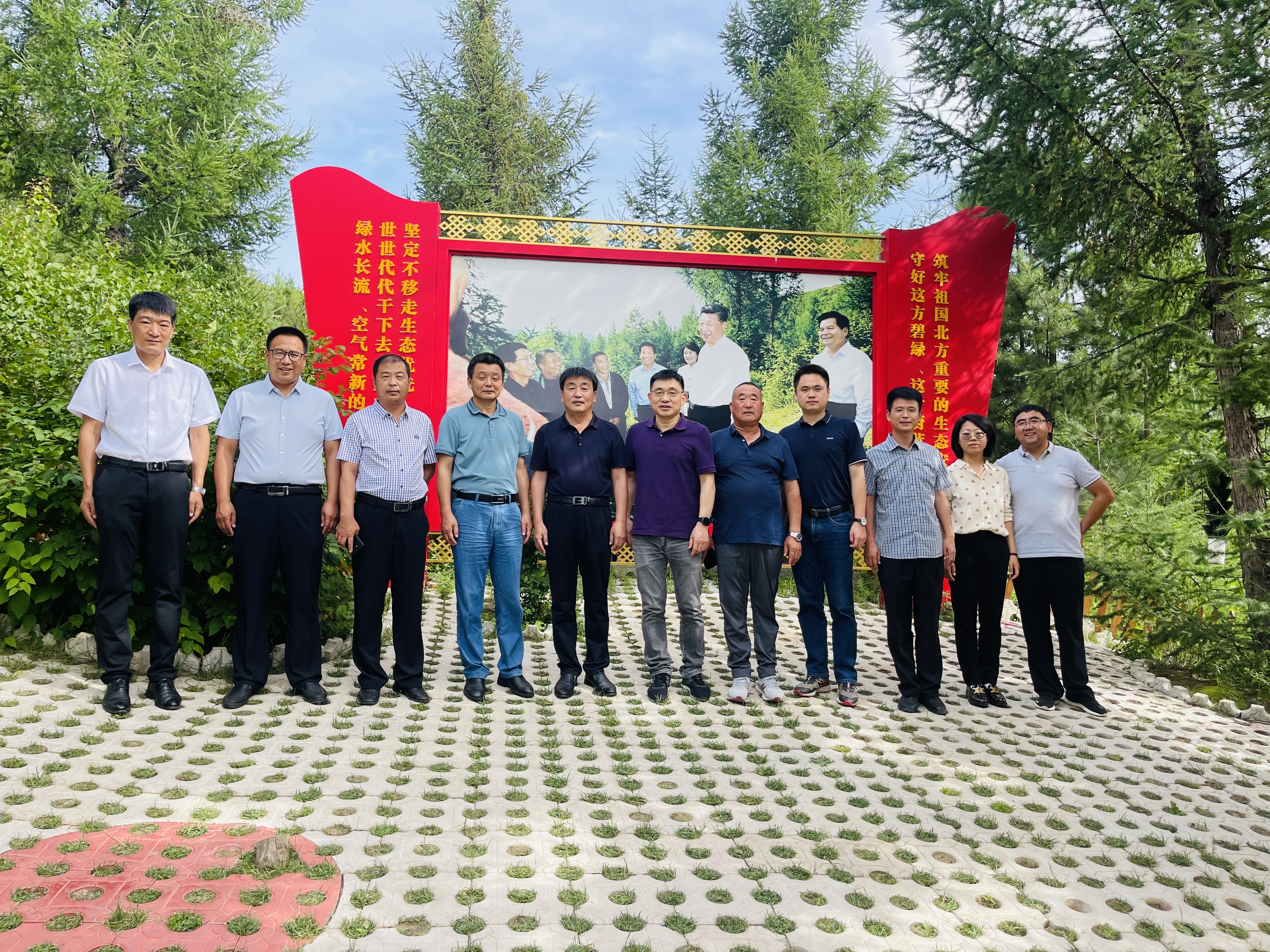 图为今年7月,公司总裁陈荣荣、副总裁陈志明专程前往内蒙古喀喇沁旗马鞍山村看望驻村干部。