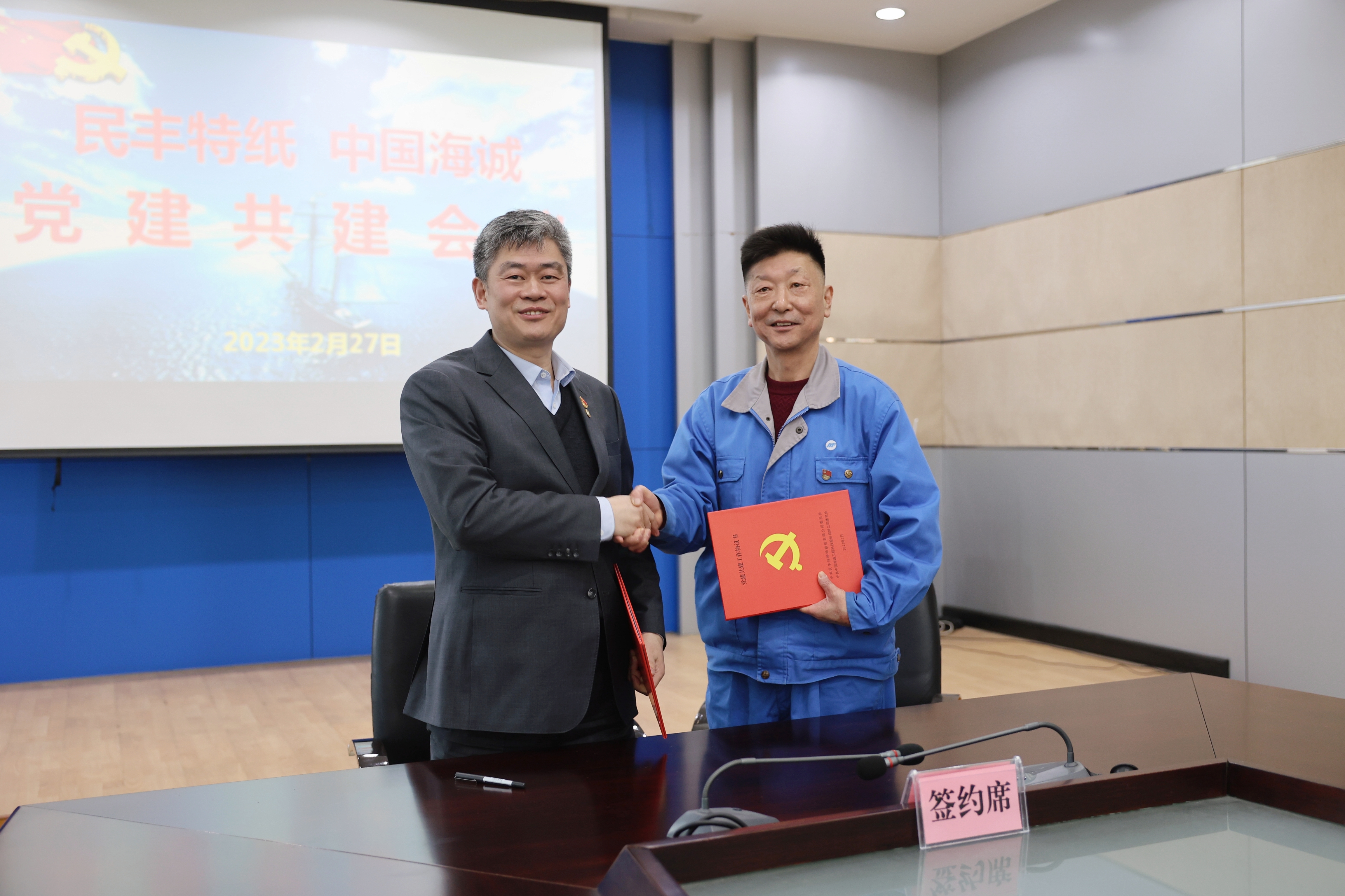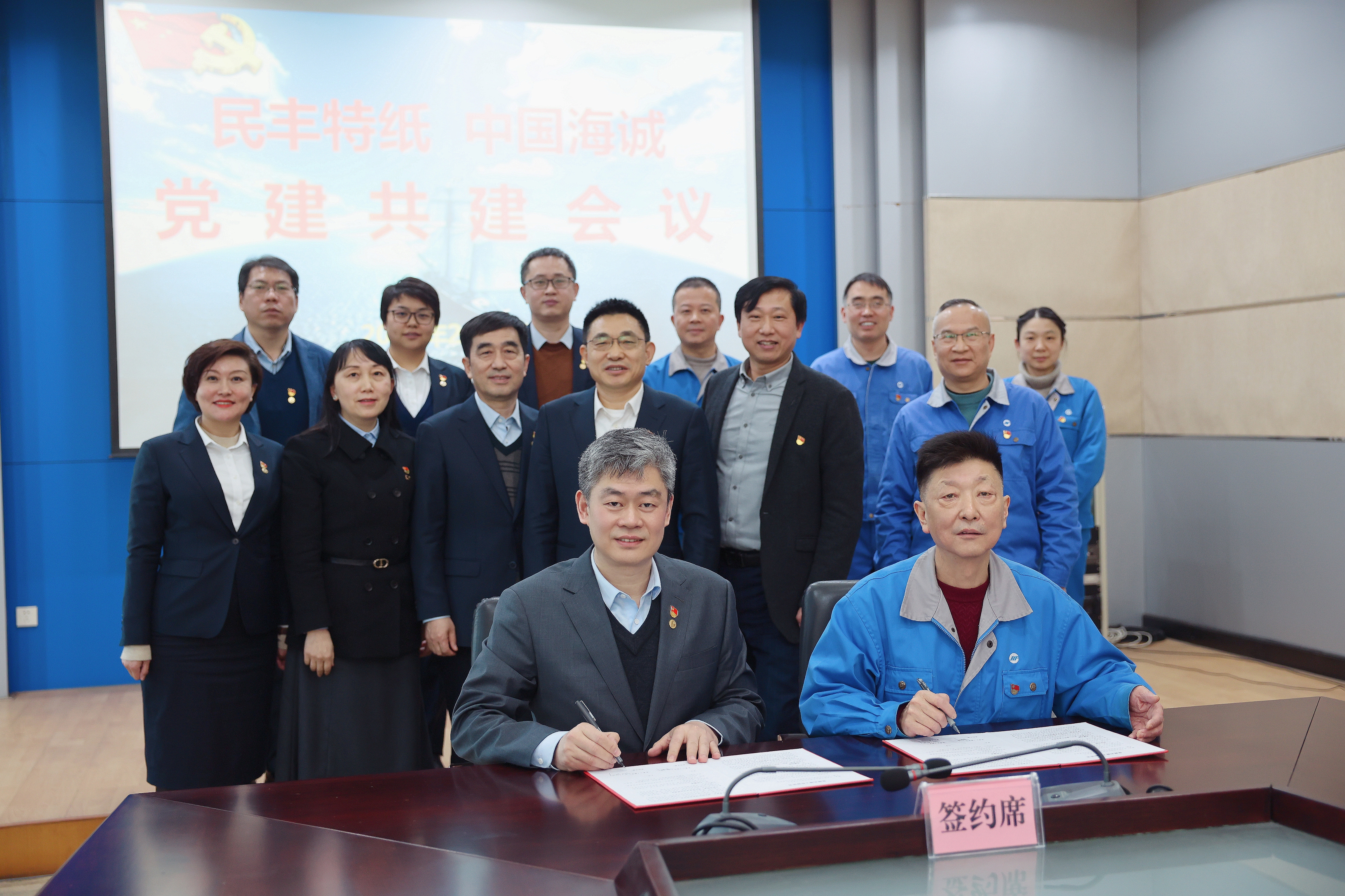为深入贯彻党的二十大精神,落实新时代党的建设总要求,通过“党建引领、共建聚力”促进党建与业务深度融合,2023年2月27日,best365英国体育在线党委与民丰特纸党委签署党建共建协议。民丰特纸党委书记、董事长、总经理曹继华,党委副书记、副总经理陶伟强,党委委员、副总经理周家俊,党委委员、纪委书记王洪祥;保利中轻副总经理、best365英国体育在线党委书记、董事长赵国昂,党委副书记、总裁陈荣荣,党委副书记、纪委书记李义民出席签约仪式。