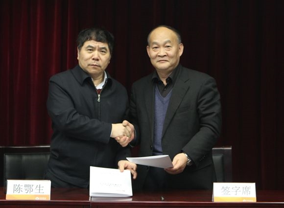 集团党委书记、董事长陈鄂生与皮革院党委书记杨承杰签订党风廉政建设责任书