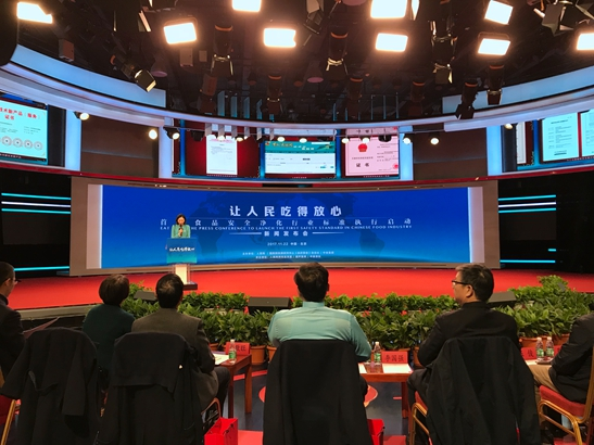 11月22日,为贯彻落实习近平总书记在十九大报告中提出的“实施食品安全战略,让人民吃得放心”的指示,深入推行行业标准,规范市场秩序。中国食品工业公司、人民网、国务院发展研究中心《经济要参》杂志社在人民网新媒体大厦一号演播厅举办了“让人民吃得放心——首个食品安全净化行业标准执行启动新闻发布会”。