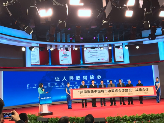 此次发布会正式启动“食品净化保食安进万家计划”,并签订“共同推动中国城市净菜综合体建设”以及“共同推动首个食品安全净化行业标准行业推广应用”战略合作协议。为进一步落实《果蔬净化清洗机》行业标准全面落地,在家庭、群体性就餐、净菜加工、农产品加工等场所牢牢建起食品安全最后一道防线,真正让老百姓放心吃好每一餐。来自国务院发展研究中心、人民网舆情监测室、中食集团、中食净化、国家食品药品监督管理总局、中国疾病预防控制中心营养与健康所、中关村丰台科技园的领导代表共同启动了“食品净化保食安进万家计划”。