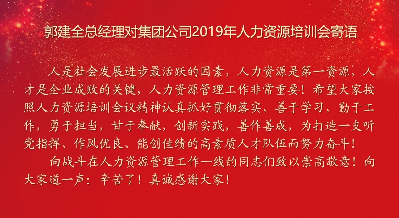 集团公司董事长张万顺亲自审定会议安排和主题报告,集团公司总经理郭建全发来致辞,对集团公司人力战线同志取得成绩给予充分肯定,对下一步工作提出殷切期望。
