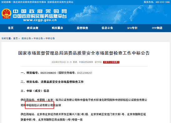 (近日,中轻检验认证有限公司首次中标国家风险监测项目)