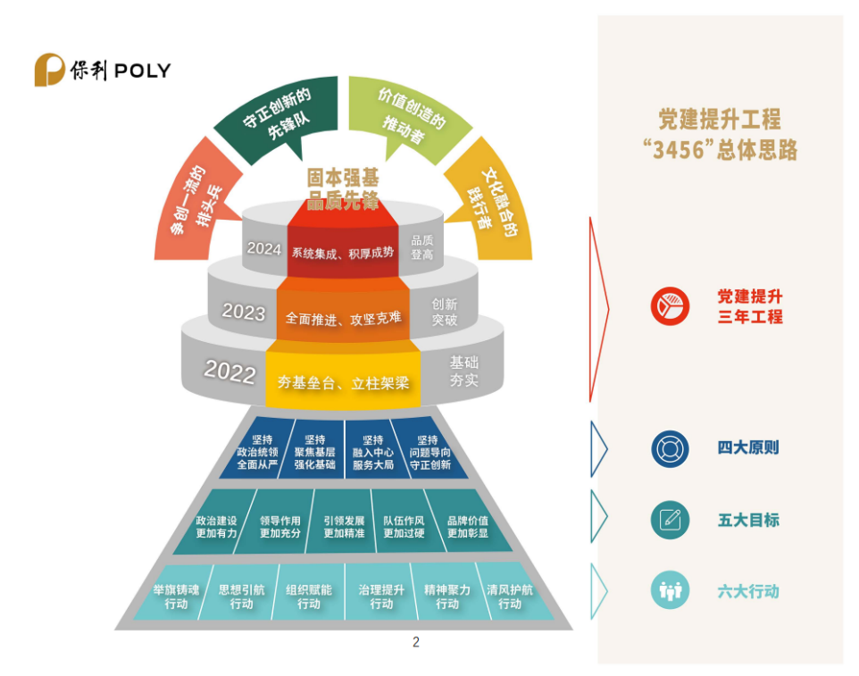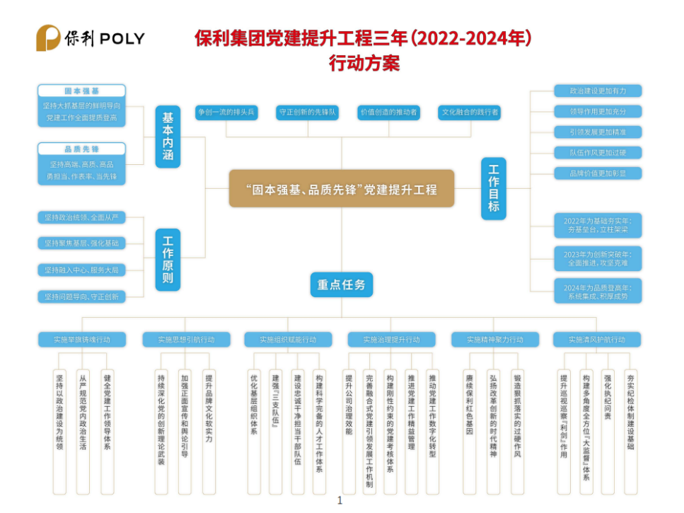 《方案》一经公布标志着“固本强基、品质先锋”党建提升工程三年行动正式启动。保利中轻党委将严格按照保利集团党委安排部署,切实提高政治站位,加强组织领导,积极开展任务试点,奋力推动“党建提升工程三年行动”落实落地。