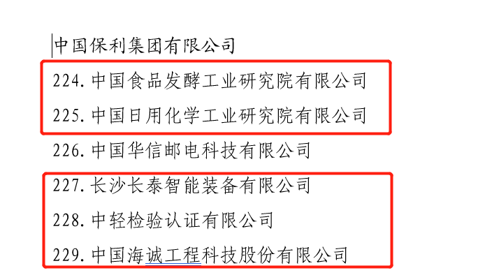 日前,国务院国资委改革办发布了“科改示范企业”名单。保利中轻所属中国食品发酵工业研究院、中国日用化学工业研究院、长沙长泰智能装备有限公司、中轻检验认证有限公司、best365英国体育在线榜上有名。