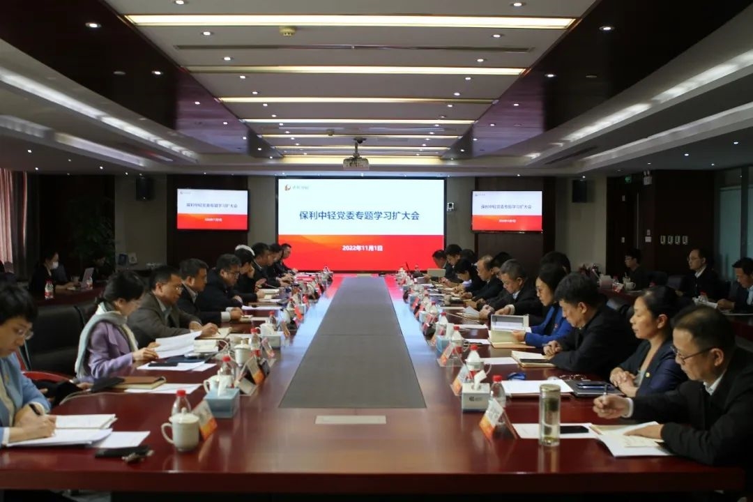 在全面学习贯彻党的二十大精神之际,全面启动部署明年全面预算工作之时,保利中轻党委按照保利集团党委要求原原本本学习的同时,11月1日下午组织召开党委专题学习扩大会,紧紧围绕“深入学习贯彻党的二十大精神,落实‘八维精益’理念,推进高质量发展”主题,结合企业实际进行集中学习研讨。保利中轻党委书记、董事长安胜杰主持会议并总结讲话。保利中轻领导班子成员、总经理助理、总部各部门负责人,二级子公司党政主要负责人分别以现场和视频形式参会。