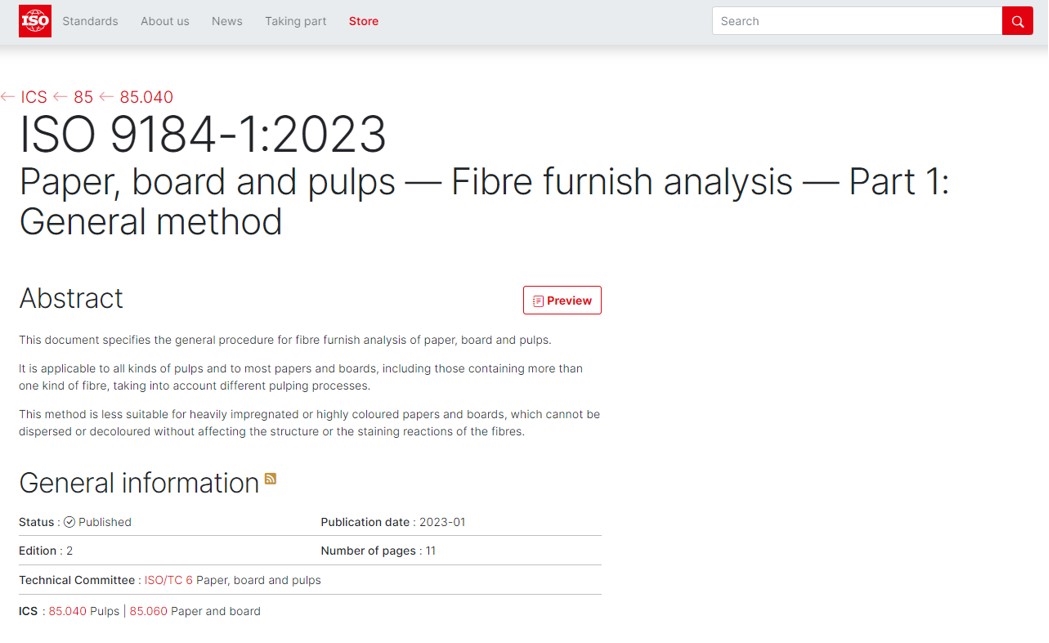 中国制浆造纸研究院牵头起草的《纸、纸板和纸浆纤维组成分析第1部分:通用方法》国际标准正式发布。中国制浆造纸研究院、中国食品发酵工业研究院分别牵头制定的《绿色产品评价 纸和纸制品》《食品包装用淋膜纸和纸板》2项国家标准,《干制红枣-规格和测试方法》1项国际标准成功立项。