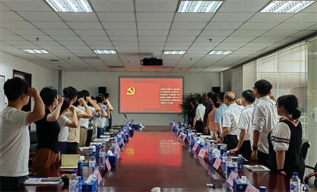 联学共建座谈会在雄壮的国歌声中拉开序幕。会议由保利中轻总部第一党支部书记、纪检部主任万宁主持。全体党员面对党旗再次庄严宣誓,重温入党初心。