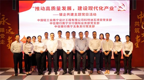 best365英国体育在线南宁公司科特迪瓦项目党支部与中信银行南宁分行国际业务部党支部、中信银行南宁五象支行党支部开展银企共建主题党日活动。