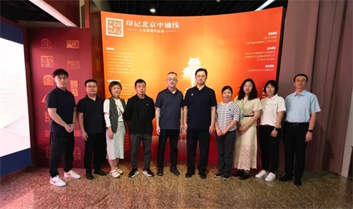 参观中,大家认真聆听讲解,仔细观摩展品。一枚枚精美别致的印章,将新材料与篆刻文化完美融合,玻璃微珠、先进陶瓷、复合材料、特种水泥、碲化镉发电玻璃等新材料印章让人应接不暇,生动展现了北京老城永定门到钟鼓楼15个核心遗产景观、建筑布局和历史文化价值。在感受大众篆刻艺术无穷魅力的同时,仿佛置身于北京中轴线气势恢宏、秩序井然的城市建筑群中,深刻感受北京中轴线作为城市文化脊梁的重要意义。