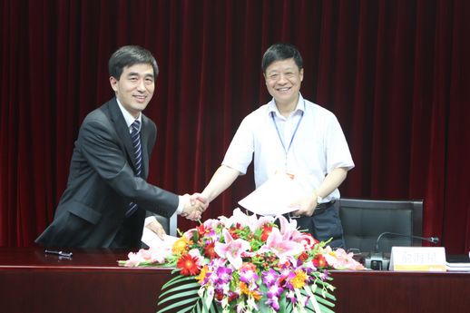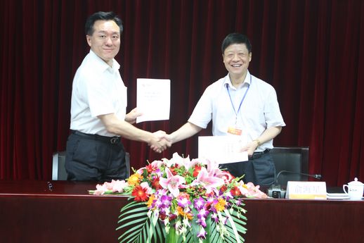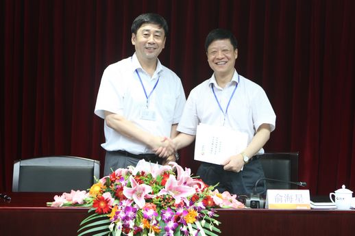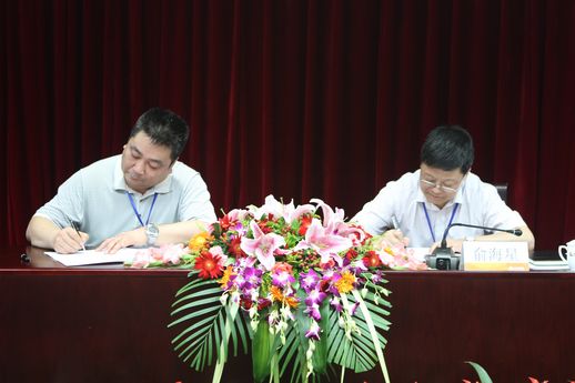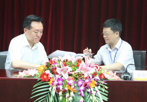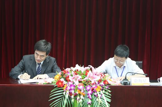 集团公司总经理俞海星与食品发酵院院长蔡木易签订任务合同书