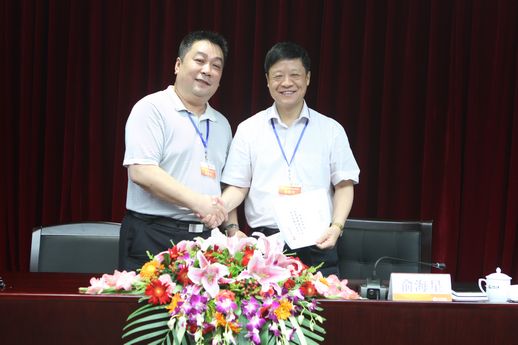 集团公司总经理俞海星与皮革院院长杨承杰签订任务合同书