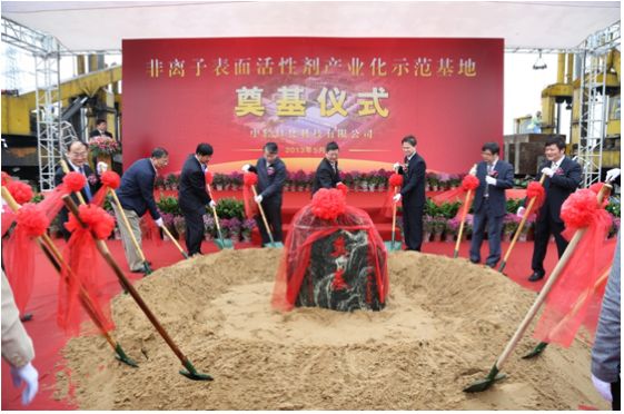 2013年5月8日,日化院非离子表面活性剂产业化示范基地建设项目奠基仪式在上海市精细化工产业园区隆重举行。集团公司总经理俞海星、副总经理曹振雷、童云翔、上海金山区区长李跃旗、中共上海市金山区委副书记祝学军、区委常委、纪委书记葛永东、副区长马淮海、上海市精细化工产业园区管委会主任沈国忠等领导出席了奠基仪式。