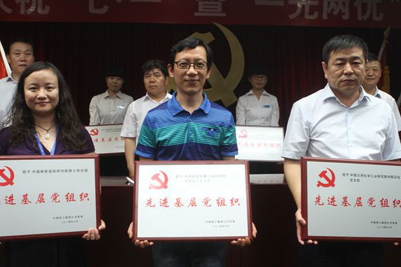 会议表彰了日化院中轻日化党支部等7个先进基层党组织、段力民等16名优秀共产党员、徐平佳等7名优秀党务工作者,分别授予“中国轻工集团公司先进基层党组织”、“ 中国轻工集团公司优秀共产党员”、“中国轻工集团公司优秀党务工作者”称号。中轻集团领导为受到表彰的先进集体、优秀个人代表颁奖。先进基层党组织代表日化院副院长郭建国、优秀共产党员代表皮革院副院长段力民分别在大会上作典型发言。
