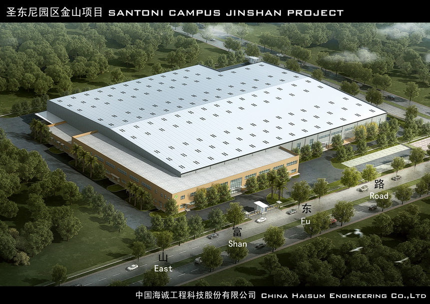 圣东尼(上海)针织机器有限公司是意大利知名的LONATI集团在中国投资的外商独资企业,集团主要生产经营纺织机械。在圆筒针织机械的部分领域,占领着全世界范围内超过90%的市场份额,处于绝对领先地位。圣东尼园区金山项目由圣东尼(上海)针织机器有限公司与其7个零件供应商于上海市金山区山阳镇共同投资兴建,总的用地面积约90055.67平方米(约135.08亩),拟分期实施。本次设计为一期圣东尼(上海)针织机器有限公司地块的厂区建设工程,根据业主提供的红线图,用地面积30016.30平米(约45.0亩),拟在厂区内建造一栋综合厂房、一个门卫及摩托车、自行车棚等,一期总建筑面积21089.64平方米。