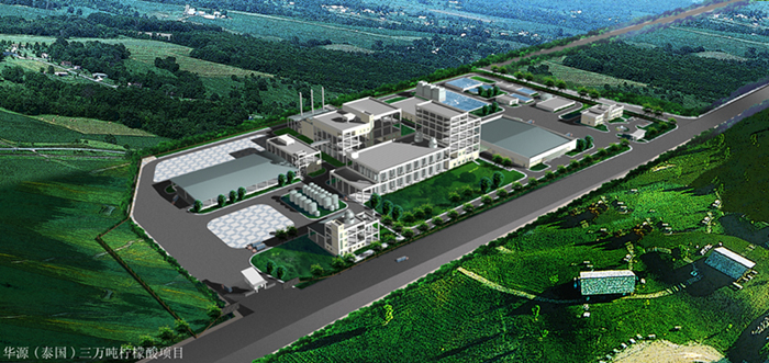 本项目位于泰国洛察纳(Rojana)工业区,总建筑面积32869平方米,总投资3860万美元,年产30000吨柠檬酸。我公司负责项目设计工作,工程内容包括原料处理车间、发酵车间、提取精制车间、硫酸钠车间、酸碱罐区等。项目于2003年建成投产。